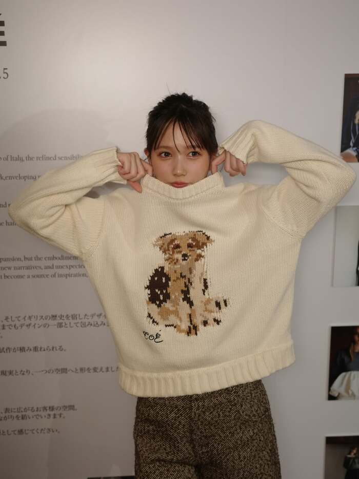続いて、「ワンちゃんのニットがかわいい」と、犬のイラストが前面に施された白いニットを着用した本田さん。