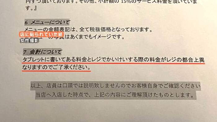 「倍以上の請求をされたので『どういうことですか?』と聞いたところ『ここに張り紙してあるよね』と言われた。」