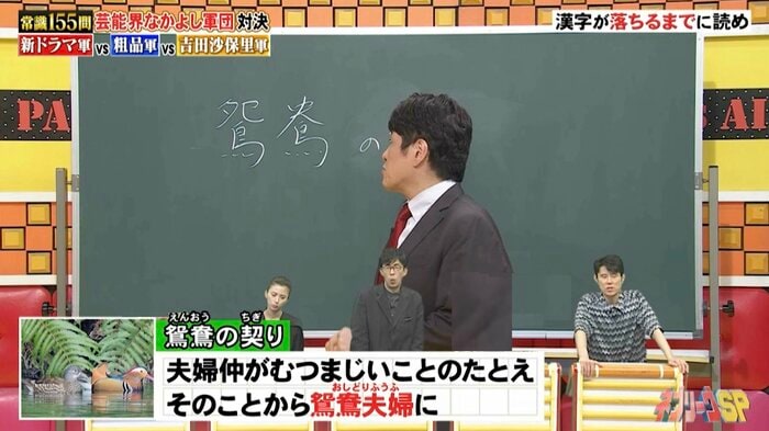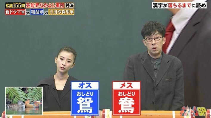 「鴛鴦(おしどり)」の読み方を当てる問題では、林修先生がおしどりの生態について解説を加えました。