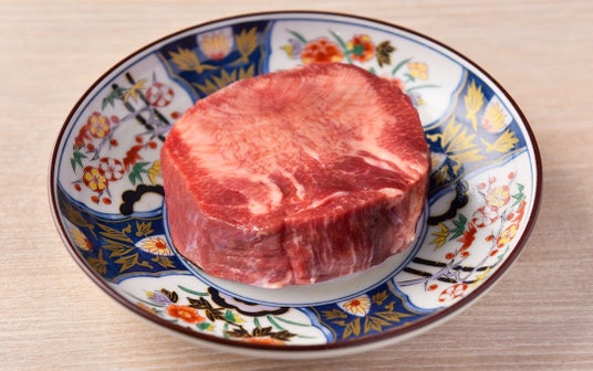 皿からはみ出るど迫力の大判ロース!キメ細い肉質で旨味があふれます。