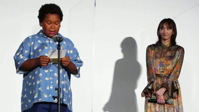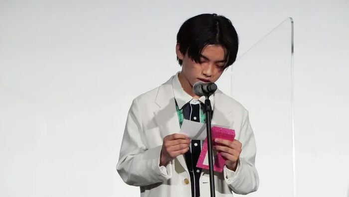 吉村さんは「緊張しすぎてセリフが飛んでしまい、セリフの確認をしているとき、私の肩に手を置き、『文香は、ちゃんと覚えているから大丈夫』と励ましてくださいました。いつも笑顔で横にいてくださる新垣さんの存在に救われていました。クランクアップでいただいた手紙は、1番の宝物です」とスピーチ、サニーさんは「新垣さんはとても穏やかで、ときに面白くて、本当の先生みたいな存在でした。僕も新垣さんのように、誰からも愛される人になれるように、これからも頑張っていきたいと思います」と宣言。
