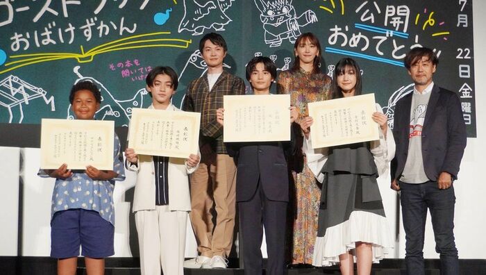 7月22日、映画「ゴーストブック おばけずかん」の初日舞台挨拶が行われ、城桧吏さん、柴崎楓雅さん、サニーマックレンドンさん、吉村文香さん、神木隆之介さん、新垣結衣さん、山崎貴監督が登場しました。