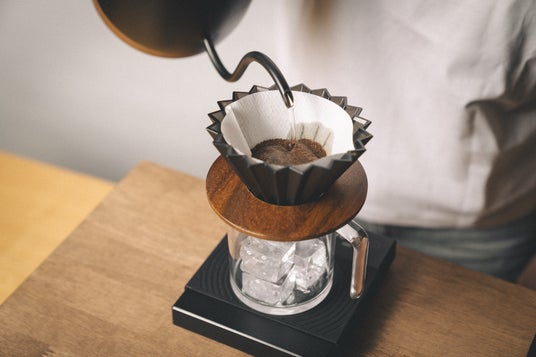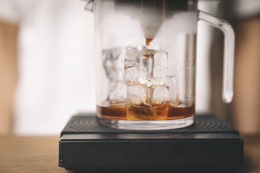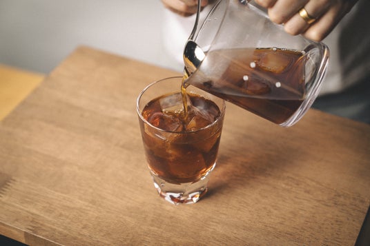 - 新しい氷を入れたカップにコーヒーを注ぎます。