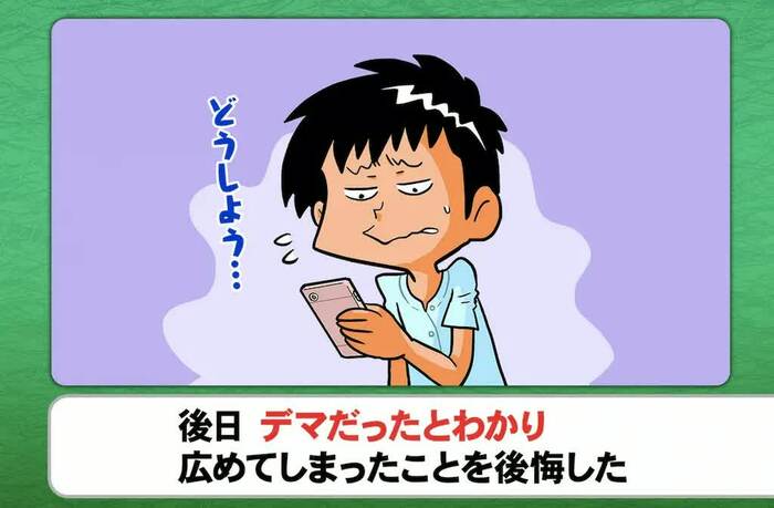 最近のフェイクニュースはよくできているので、情報を受けてすぐに拡散などの行動を起こさないほうがベター。時間をおけば続報が出てくるので、情報の真偽を判断しやすくなるそうです。