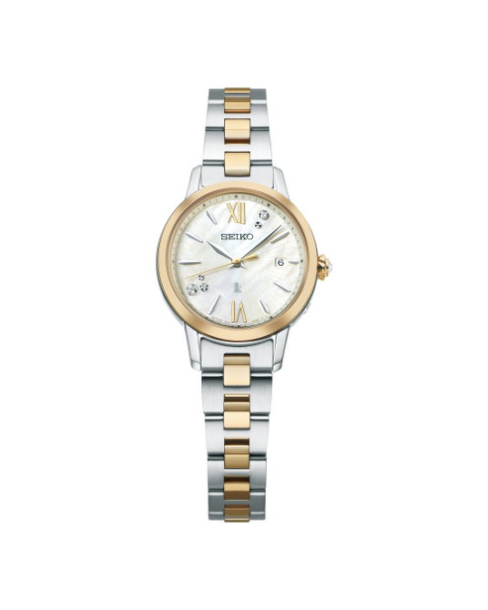 SSVW242は、シャンパンゴールドカラーとシルバーカラーが織りなす上品な輝きが美しいモデルです。ダイヤルには、月の穏やかな光を表現するため、わずかにグラデーションを施した白蝶貝を採用しました。