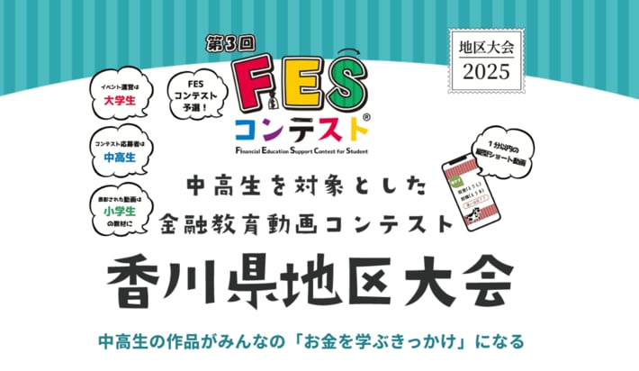 一般社団法人日本金融教育支援機構(共同代表理事:平井梨沙、阿部奈々 所在地:東京都千代田区、以下「当機構」)は、中高生による金融教育動画コンテスト「第3回FESコンテスト(R)」の香川県地区大会を開催いたします。