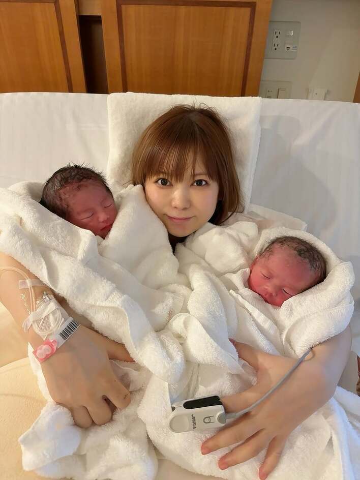 翌日10月1日の投稿では、「双子男子、あわせて5キロ以上!が爆誕してくれて人生においてレアすぎる体験をした一日」とつづり、幸せそうにほほ笑む中川さんと、その腕の中でスヤスヤと眠る双子の姿を披露していました。