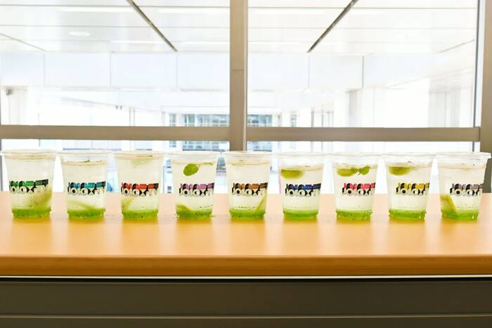 ソーダのなかに、キウイのジャムや果肉、ミントをトッピング。すっきりとした爽やかな味わいが特徴的で、ハットグとの相性も良い!ドリンクのカップ部分には『JO1CX-TV』の番組ロゴが。カラーパターンは9種類あるそうだ。