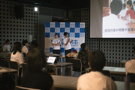 体験報告会の冒頭では「マリスタ2025-海と人を考える-」に大学生プロデューサーとして参画された2名から、マリスタ2025の事業説明、2025年8月18日(月)~19日(火)に行なった1泊2日の海洋体験プログラムでの佐伯の海の学びや体験についてのプレゼンテーションが行われました。