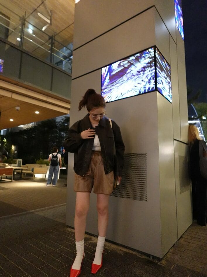 秋の夜に“ほぼ足”の美脚コーディネートを披露しました。