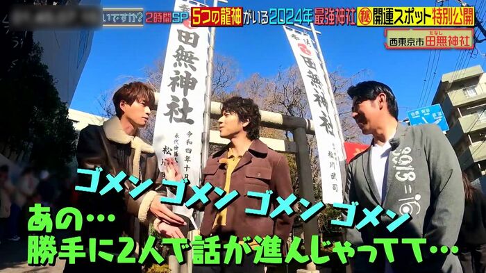 1月30日(火)放送の『突然ですが占ってもいいですか?』(フジテレビ)は、山田さん、白洲さん、シウマさんが、2024年“最強神社”とされる田無神社(東京都西東京市)を参拝しました。