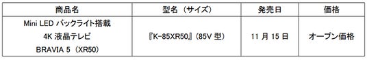 主な仕様や詳細については、商品サイトをご覧ください。BRAVIA: https://www.sony.jp/bravia/