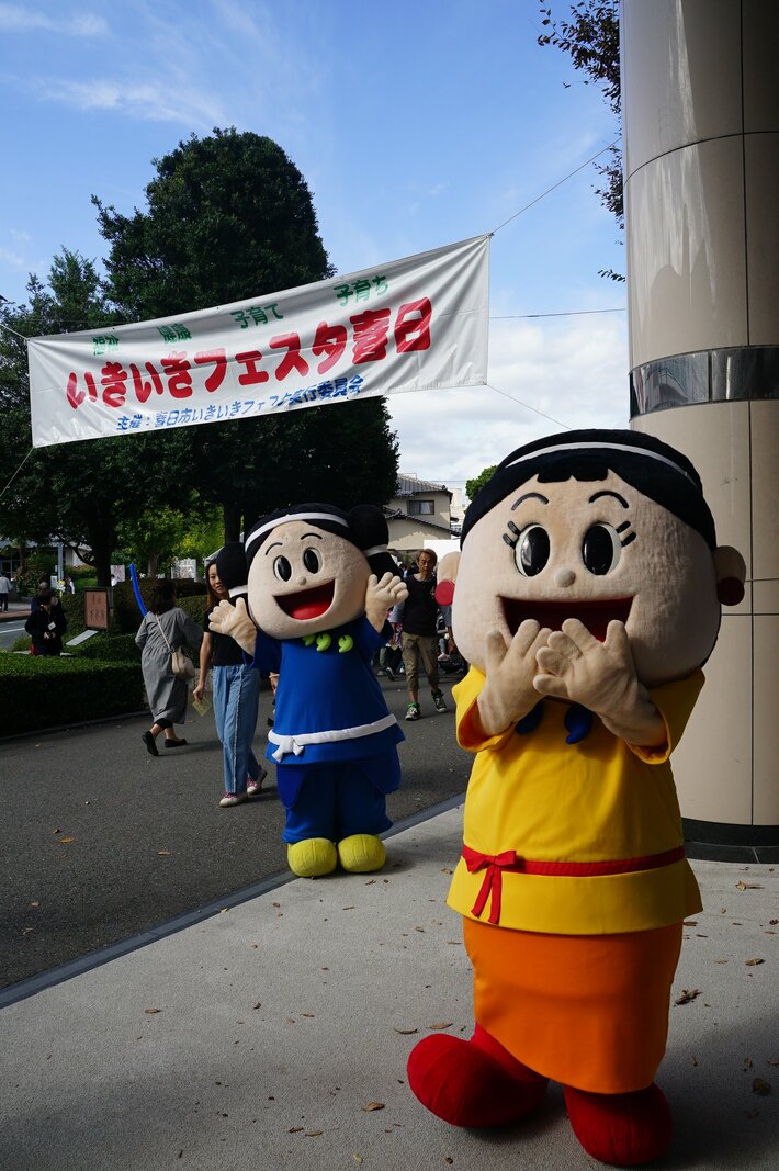 会場では、公式マスコットキャラクターの「かすがくん」「あすかちゃん」がお出迎え