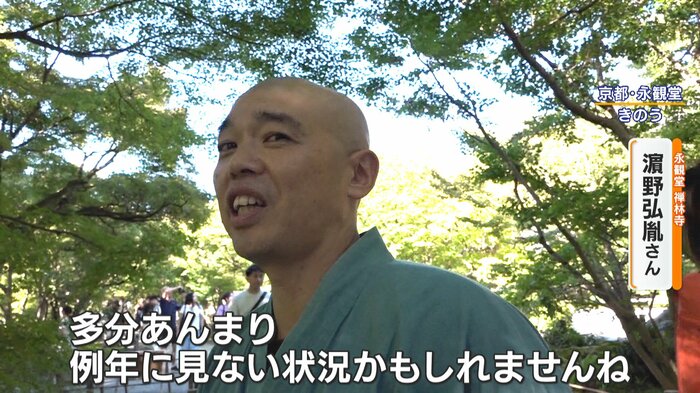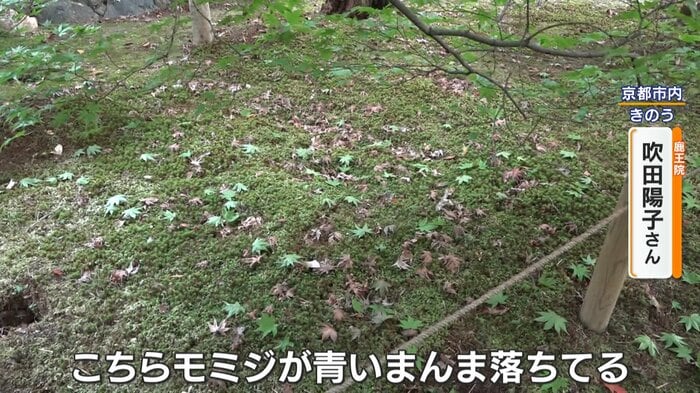 嵐山の隠れた紅葉スポット「鹿王院」。ここでも、猛暑などの影響で一部のモミジの葉が枯れたり落ちたりしてしまっているといいます。