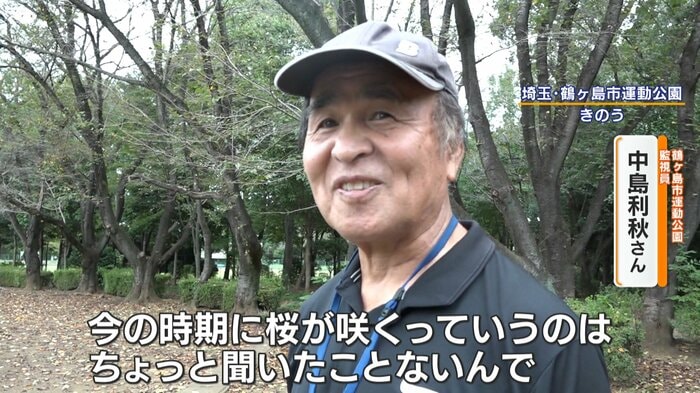 埼玉県にある「鶴ヶ島市運動公園」では、季節外れの桜の開花が…。