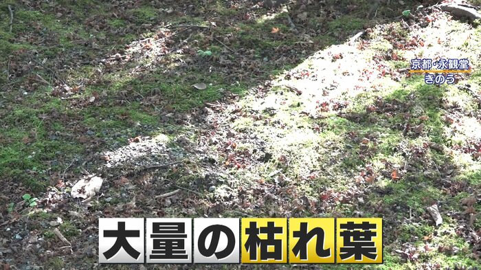 永楽堂禅林寺の濱野さんによると、葉が枯れているのを最初に確認したのは、9月の上旬。その後、一部の木から枯れた葉っぱが大量に落ちたといいます。