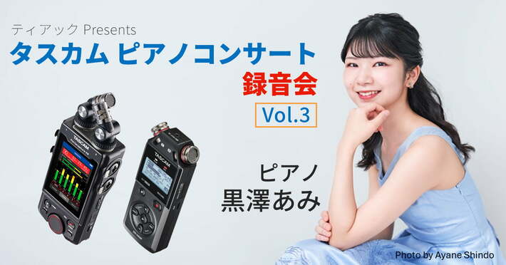 TASCAM(タスカム)は、録音愛好家の皆さまに贈る、特別な体験型イベント「TASCAMピアノコンサート録音会 vol.3」を、好評につき2025年12月6日(土)に開催いたします。