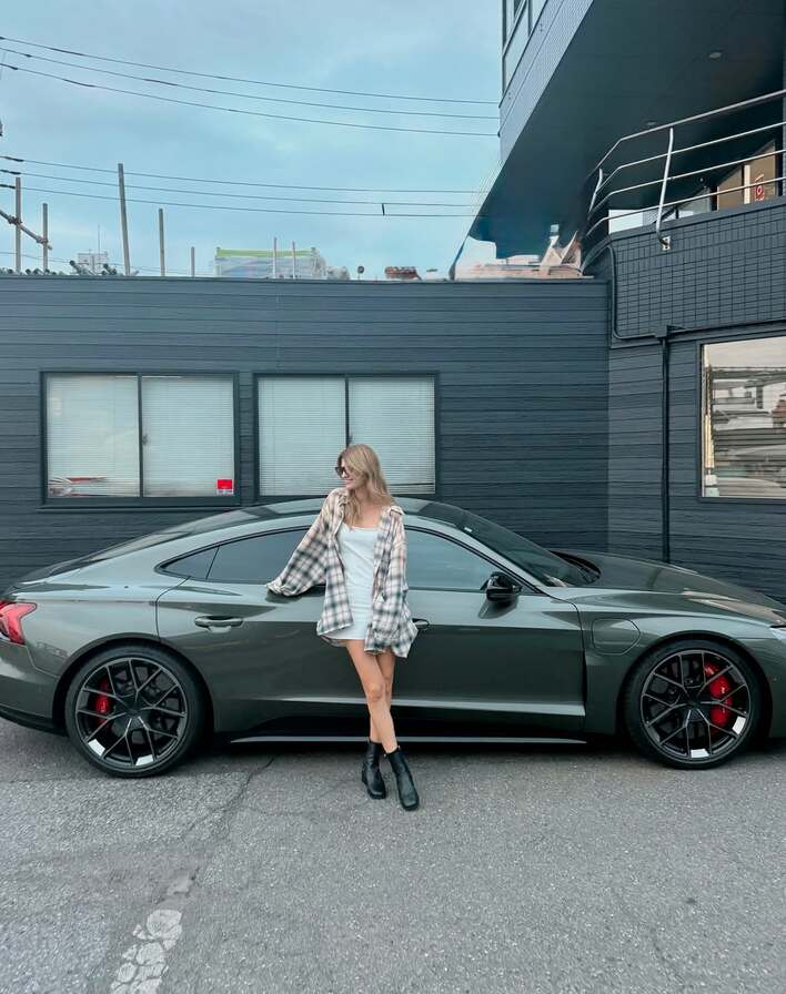 車好きとして知られているマギーさんは投稿で、「Audi e-tron GT 試乗してきたよ〜」とつづり、ドイツの高級車であるアウディの電気自動車とのショットを披露。