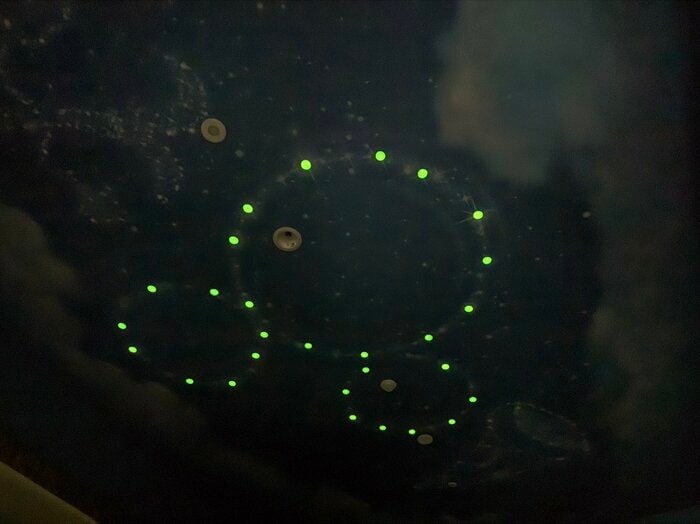 実は、カーテンを閉めて部屋の電気を消してみると・・・