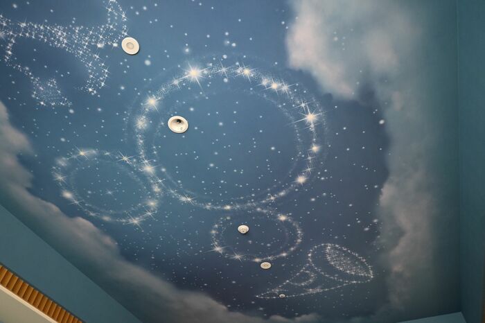 そして、ベッドに寝転ぶと雲や星空が描かれた天井が目に飛び込んできます。