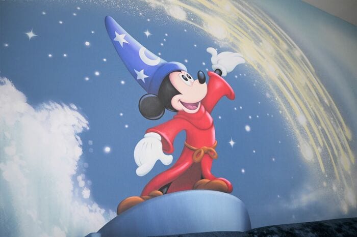 そして、そして、何よりこの部屋の最大の魅力は、魔法を操っているローブ姿のミッキーが壁に大きく描かれたアート!
