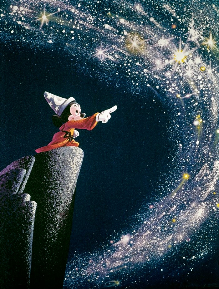 これは、物語の中でもある、夢の中で一人前の魔法使いになったミッキーが再現されているんだそう。