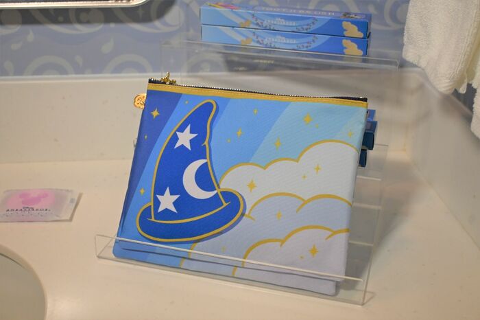 そして、「ミッキーマウスルーム(魔法使いの弟子)」に宿泊すると、魔法使いの帽子がデザインされたキュートなポーチが付いてきます。