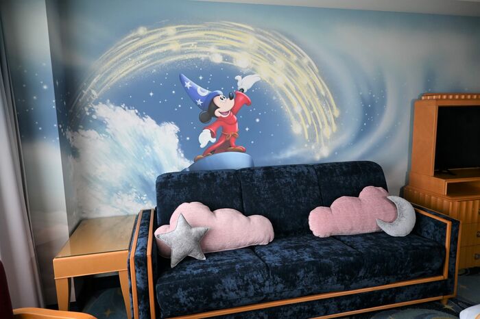 この部屋では、ディズニー映画『ファンタジア』の「魔法使いの弟子」の世界観が存分に感じられちゃいます。