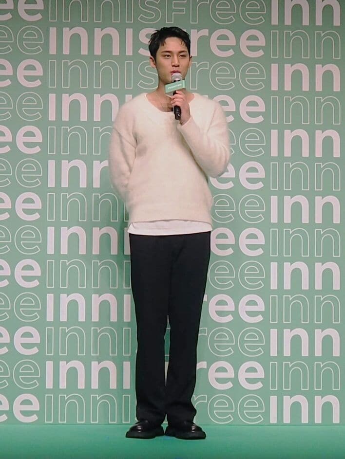韓国のコスメブランド「INNISFREE(イニスフリー)」の世界で2店舗目となるグローバルフラッグシップストアが東京・表参道にオープンすることになり、アンバサダーのMINGYUさんがPR発表会に出席しました。