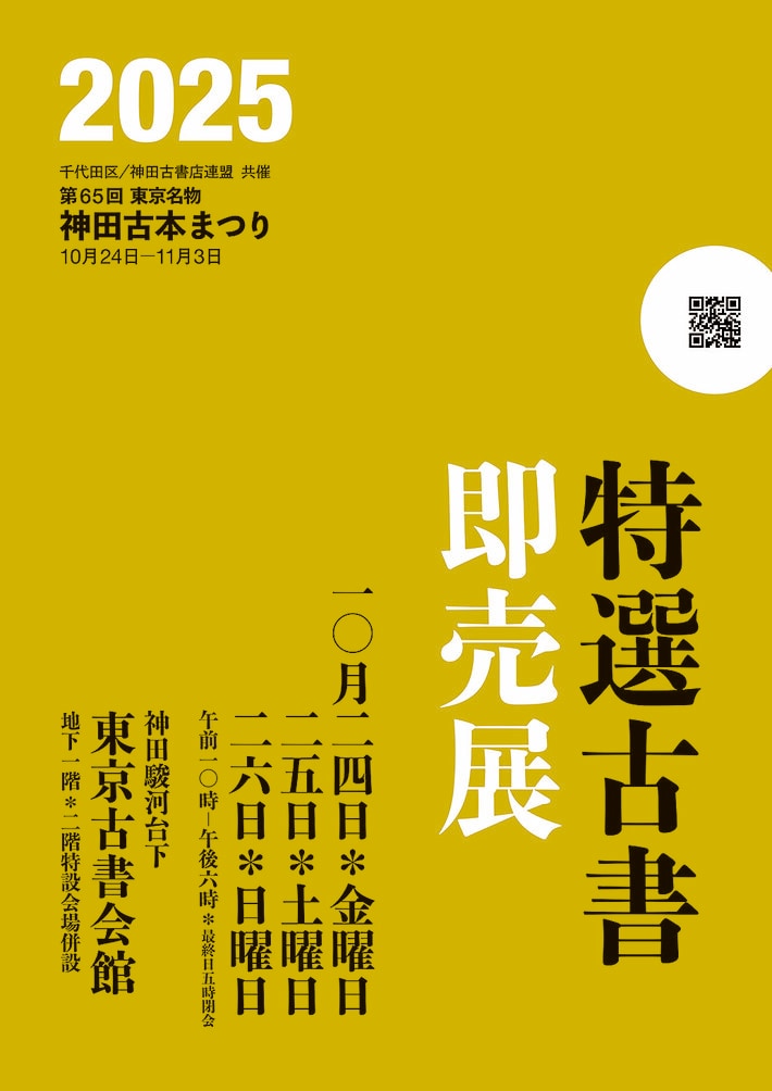 2025年10月24日(金)~10月26日(日)の3日間、東京古書会館にて「特選古書即売展」を開催いたします。
