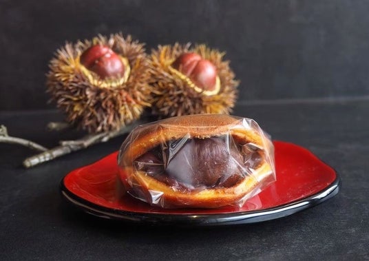 しっとりした生地に北海道産小豆を使用した上品な甘さの餡をたっぷり挟みました。渋皮栗が丸ごと入った一品です。