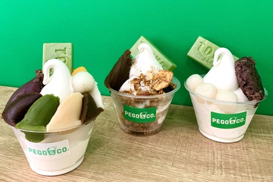 <東京/PEGO&CO.>左から:あんこ全部のせパフェ 880円(1個)、グラノーラPEGOカップ 660円(1個)、白玉PEGOカップ 660円(1個)