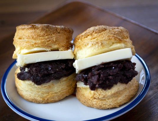 北千住のパンケーキ店が作る「あんバタースコーン」。生地は北海道産小麦「穂希(ほまれ)」を使用。北海道十勝産小豆のあんことバターをサンドした人気スコーンです。