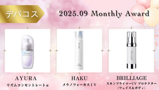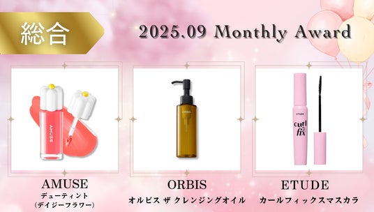 COSMEbi月間ベストコスメでは、COSMEbiユーザーのリアルなクチコミとSNSの話題性をもとに3か月の集計期間を通して支持された2025年9月のベストコスメを発表いたします。
