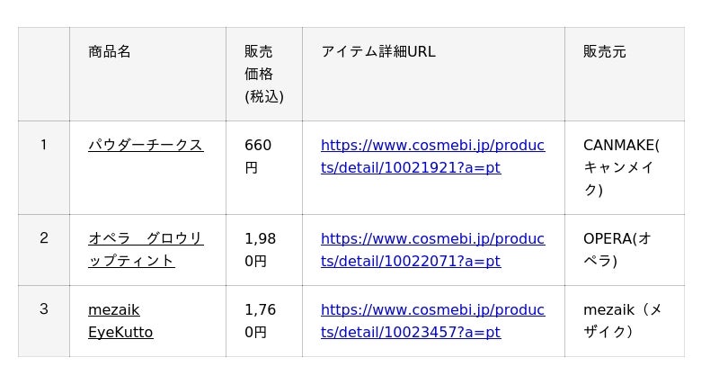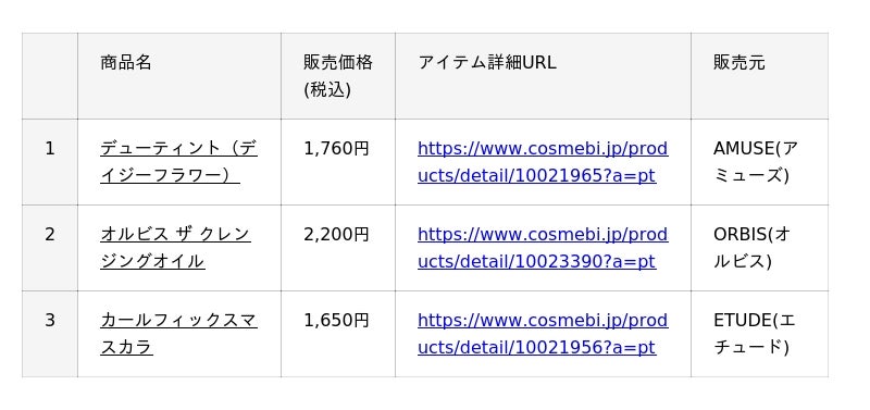 ・公式サイト :https://www.cosmebi.jp/?a=pt