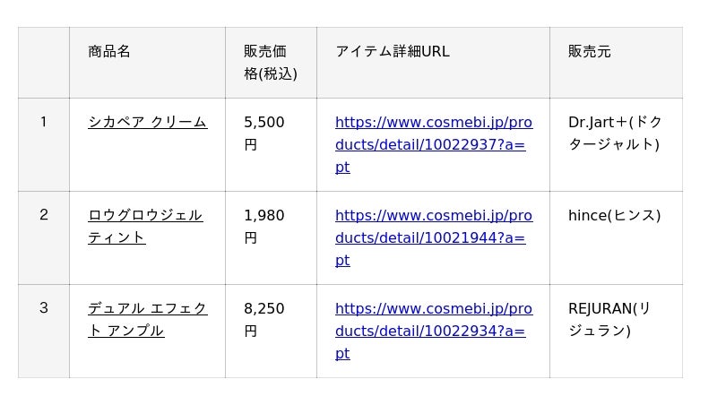 COSME biはコスメの検索や比較ができる情報サイトです。