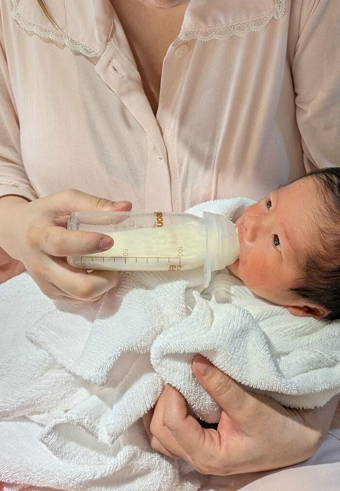 他にも、長男にミルクを与える育児の様子も見ることができます。ぱっちりと目を開き、ゴクゴクと飲んでいるようです。