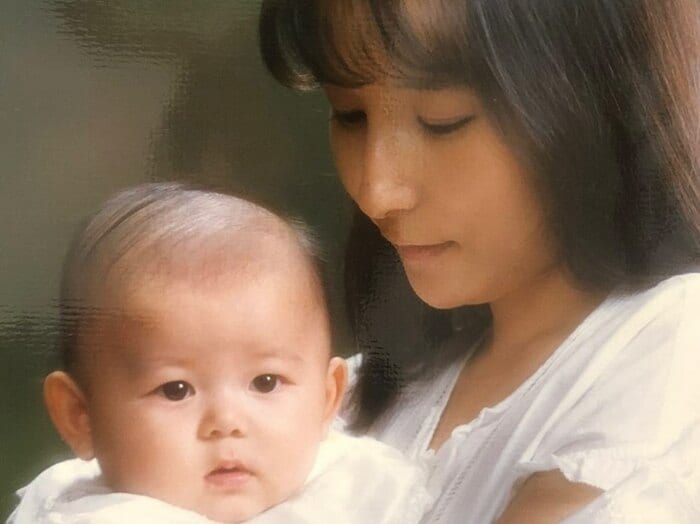 一方の「次男はわたしの赤ちゃんの頃にそっくりでびっくりしてる」と、中川さんの幼少期時代のショットも公開。母に抱っこされた中川さんは、ぷっくりした口元がなんともキュートです。