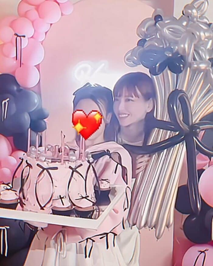 公開された動画では、ピンクと黒のバルーンとリボンの装飾を背景に、バルーンでできた花束を手にした鈴木さんと長女が顔を寄せ合って記念撮影をしている様子が!