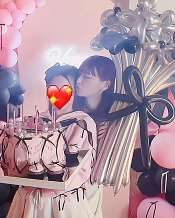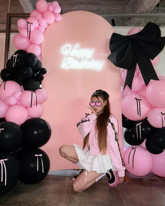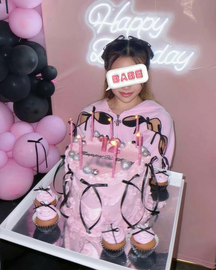 長女の1ショットの写真を見てみると、先ほどの動画でも手にしていたバースデーケーキはピンク色でハートの形をしており、側面には黒いリボンが飾られ、「12」というろうそくと「Happy Birthday」とメッセージが書かれているのが分かります!