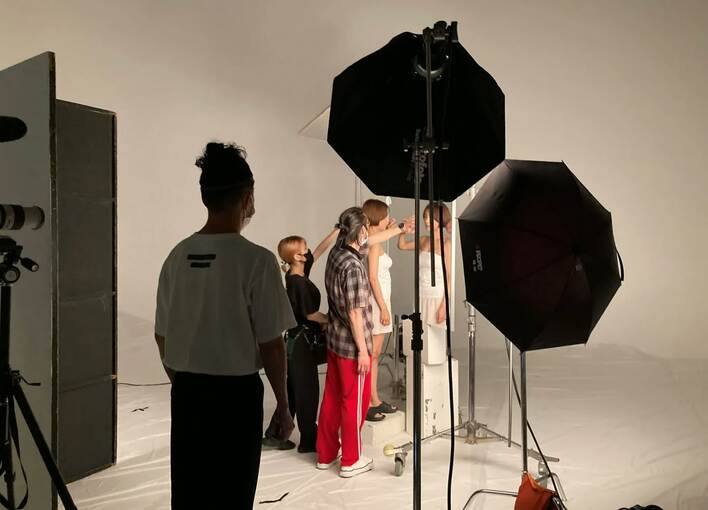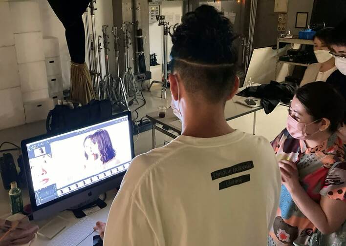 当日の撮影スタジオは、カメラセッティングに加えて、鏡が置かれ、どこか不思議な雰囲気。