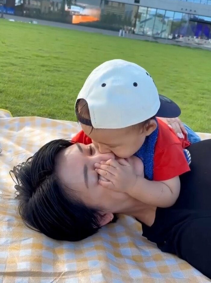 息子・陽太くん(0)から熱烈のチューをされる姿を公開しました。