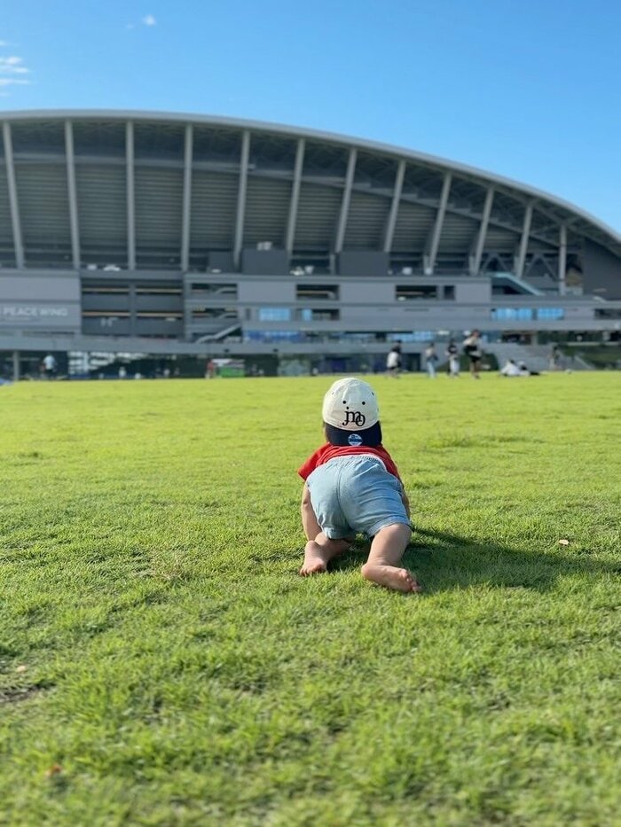 太陽の光を浴びながら、陽太くんがはだしで広大な芝生の上をハイハイしたり…。