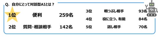 ◆20代にとって対話型AIとは? 1位「便利」、2位「質問・相談相手」、3位「暇つぶし相手」