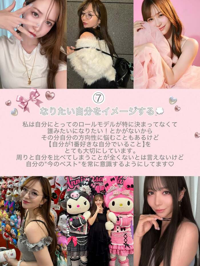 最後となる7つ目は「なりたい自分をイメージする」!河西さんは特にロールモデルが決まっていなかったそうですが、「【自分が1番好きな自分でいること】をとても大切にしています。」とつづっています。