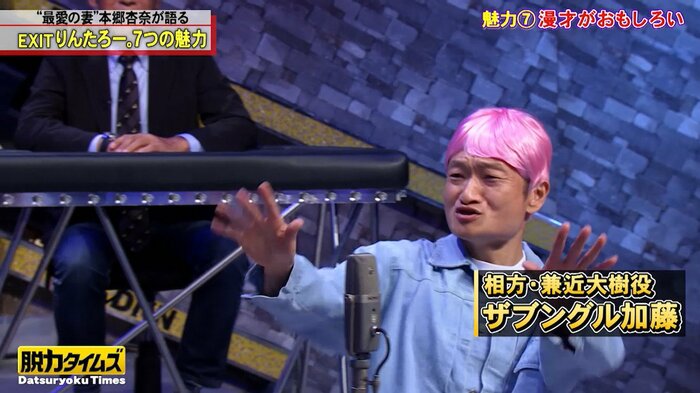そして「⑦漫才がおもしろい」では、相方・兼近大樹さん役を務める、ピンクのかつらをかぶった、ザブングル加藤さんと漫才を披露することに。
