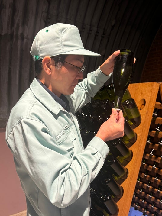 実演では、当社醸造責任者の河西由喜が、ゲストの皆さまの目前で「デゴルジュマン(滓抜き)」を行います。さらに、ドサージュ(「門出のリキュール」による糖分調整)を施したワインと、甘味を加えないノン・ドサージュとの飲み比べを通じて、瓶内二次発酵製法が織りなす“泡の世界”、そして冷涼な北海道のテロワールが育む、繊細で気品あふれるスパークリングの魅力を存分にお楽しみいただけます。