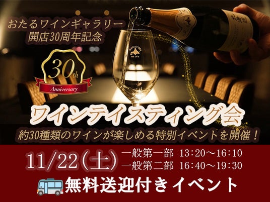北海道ワイン株式会社(本社:北海道小樽市、以下 当社)は、本社に併設する直営店「おたるワインギャラリー」の開店30周年*を記念し、見て・聞いて・味わって--スパークリングワインの奥深さと楽しさを体感する特別なテイスティングイベントを開催いたします。