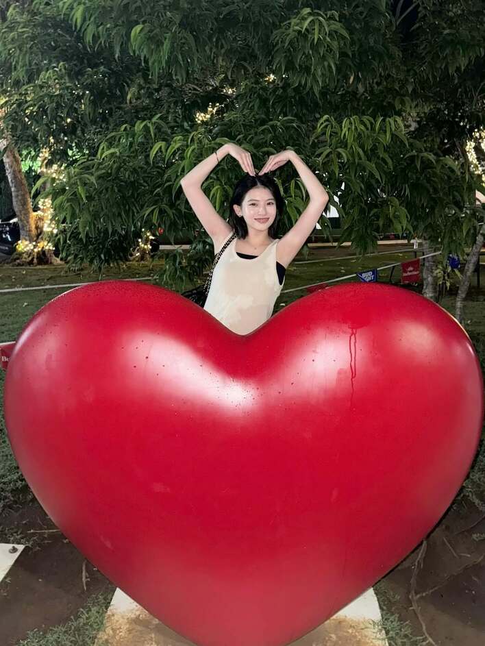 そこには、大きな赤いハートのオブジェの後ろに立ち、手でハートポーズをする出口さんの姿が!祝福してくれるファンに向けて愛を伝えたかったのでしょうか。