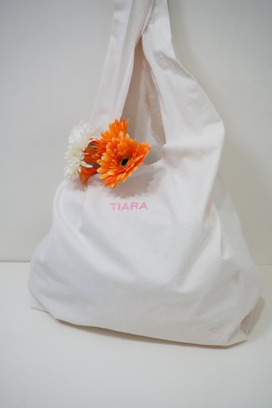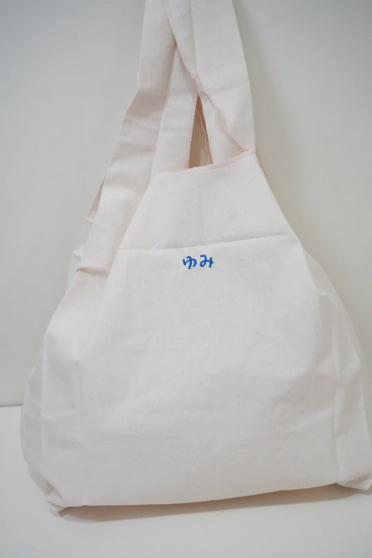 マルシェバッグは、背面側に名入れ刺繍がはいります